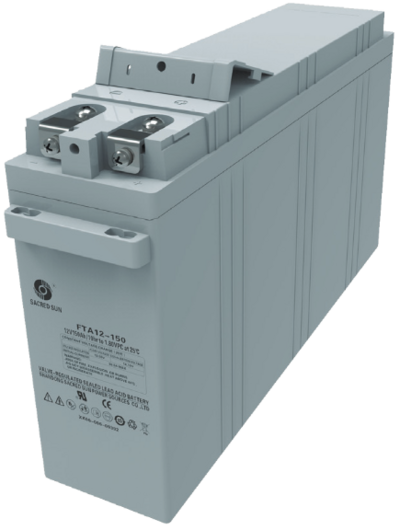 Bei der Baureihe FTA handelt es sich um ventilgesteuerte (VRLA) Batterien mit Gitterplatten. Die Bauform entspricht einer Frontterminalbatterie mit Batteriepolen an der vorderen Front und nict - wie bei einer Blockbatterie - mit sogenannten Topterminal-Anschlüssen. Diese Anschlußart macht diesen Batterietyp sehr interessant für den Einbau in Schränken oder auf Gestellen, um einen risikobehafteten Einbau in hintereinanderstehenden Blockbatterien oder eine risikobehaftete Wartung hintereinanderstehender Blockbatterien zu vermeiden und um somit den Einbau / die Wartung zu erleichtern. Der Separator besteht aus Glas-Faser-Vlies (AGM), in dem der Elektrolyt gebunden ist. Aufgrund der hohen Energiedichte eignen sich diese Akkumulatoren besonders für den Einsatz in USV-Anlagen und Rechenzentren, aber auch in anderen Bereichen der Notstromversorgung wie IT, Telecom, Sicherheitsbeleuchtungsanlagen können diese eingesetzt werden. Gemäß EUROBAT werden diese Akkumulatoren als 10 -12 Jahre, LONG LIFE, eingestuft.Sacred Sun FTA12-150